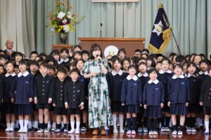 すてきな校歌をつくってくださった川嶋あいさん。ありがとうございました。4つの校歌のいのちが吹き込まれた新しい校歌「光る明日へ」をずっと大切に歌っていきます。