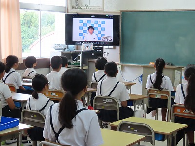 また、お休みに入る教員の紹介がありました。学習棟の各教室からの「○○先生、がんばってください」の声は、配信している管理棟3階の大和っ子ルームまでしっかりと届きました。
