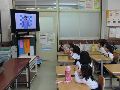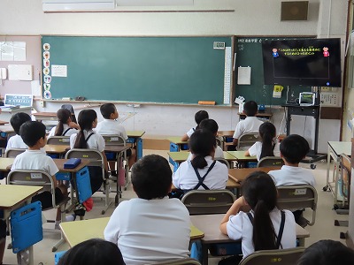 7月18日(金)、夏休み前全校児童集会を行いました。当初、体育館で行う予定でしたが、熱中症対策として、管理棟3階の大和っ子ルームからweb会議システムを使ったオンライン配信での児童集会としました。