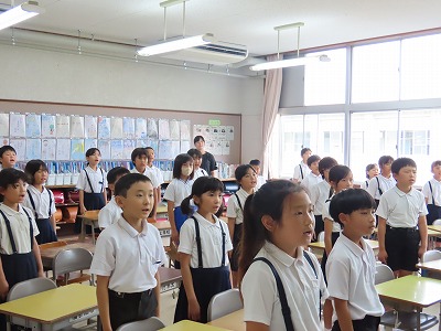 最後に、今月の歌「世界中のこどもたちが」を全校で一斉に歌いました。どの教室からも聴こえる元気で明るい歌声から、これから始まる夏休みが、きっと充実したものになることを感じることができました。