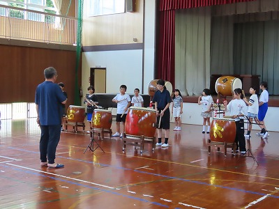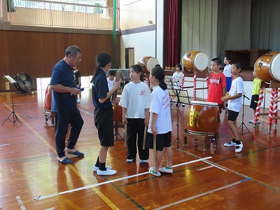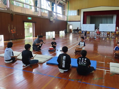 石城太鼓クラブも、石城太鼓存会の方と太鼓経験者の中学生に協力してもらいながら、23名の子どもたちが練習をしています。