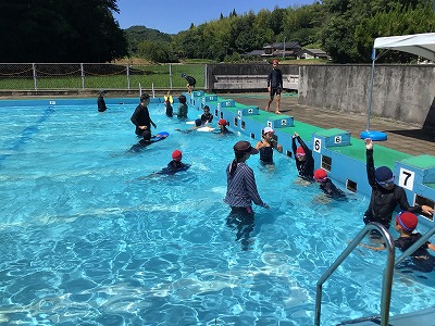 水泳教室には、5・6年生の25mを泳げるようになりたい子どもたちが参加しました。