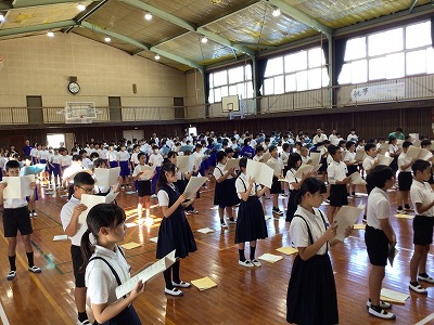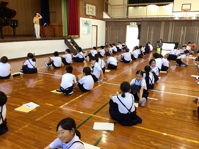 10月1日の午後は、小中合同での今年度初めての合唱練習でした。給食後、5・6年生は大和中学校へバスで移動し、中学生の皆さんとの練習を行いました。