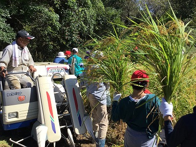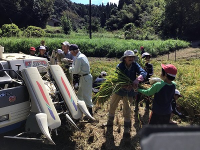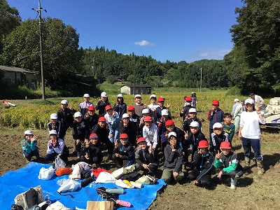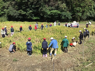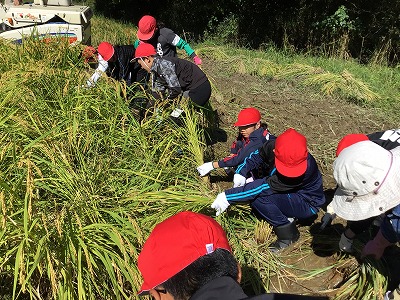 10月6日、地域の田んぼの会の方にお世話していただき、稲刈りを行いました。