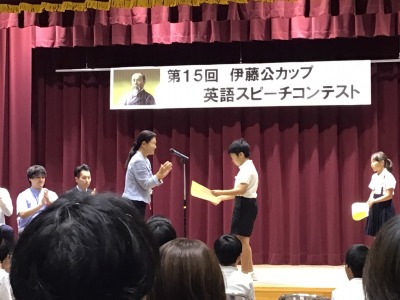 10月18日、第15回伊藤公カップ 英語スピーチコンテストが、大和コミュ二ティーセンターで行われました。本校は、伊藤公の生家のお膝元の学校。うれしいことに5名の5・6年生が参加してくれました。長州ファイブならぬ、大和ファイブです。