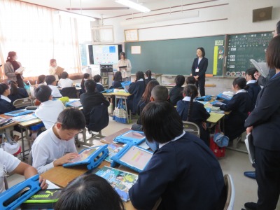 研究授業は、校内の教職員だけでなく、市内外の小・中・高の先生方、大和地域の英会話サークルの方々など、多くの方々が参観されました。そのような中、日常と変わりなく学習できた子どもたちに、拍手です。