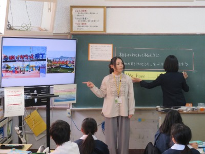今年度、本校は小中高連携英語教育推進校として、大和中学校、光高校とともに、外国語科の授業研究に取り組んでいます。11月11日(火)は、本校の5年生がその研究授業を行いました。