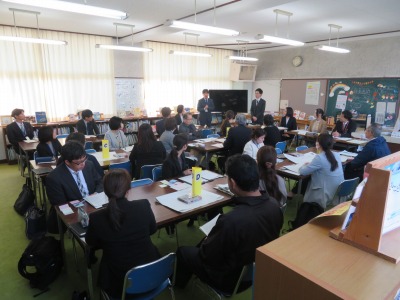 (追記) 放課後、参観した教職員の方々とともに、授業の振り返りをしました。子どもたちのがんばりに答えられるよう、教職員もがんばります!