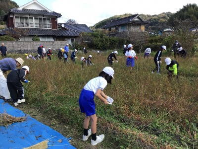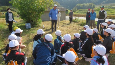 4年生のほとんどが初めてのそば刈り体験でしたが、農業指導員さんや塩田コミュニティ協議会の皆さん等、多くの皆さんのおかげで、上手に行うことができました。