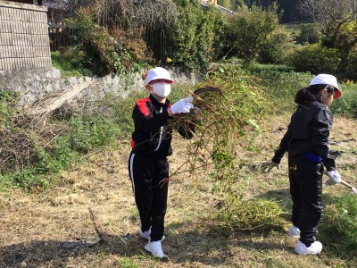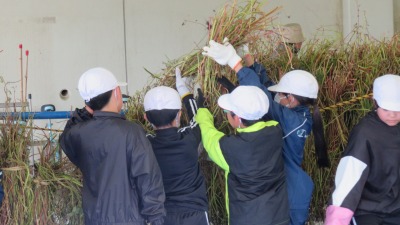 8月の登校日に塩田のそば畑に植えたそばが大きく育ち、実をつけました。今日は、そば刈りの日です。4年生が塩田に出かけ、そばの収穫をしました。