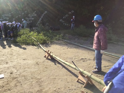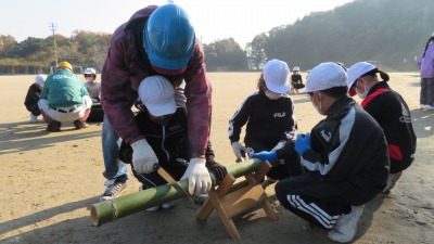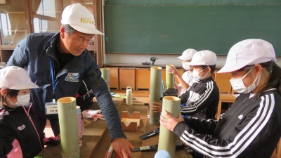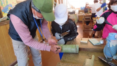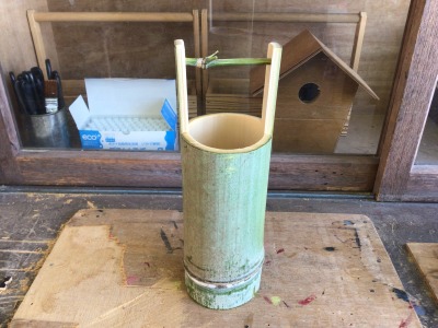 ※今回使った竹は切り出したばっかりであるため、そのままにしておくとカビが生えやすいそうです。一度大きな鍋で煮る等すると、カビにくく、長持ちするとのことでした。