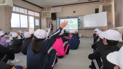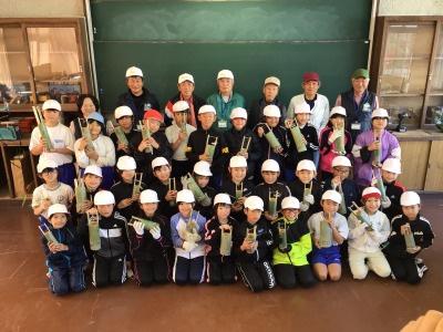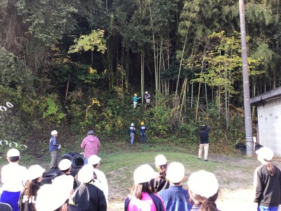 11月27日、4年生が、「森の学校」の学習に参加しました。この取組は、光市林業研究会と周南農林水産事務所の皆さんが、子どもたちにふるさとの森林の大切さやそれを支える林業の大切さを伝えるために実施してくださっているものです。