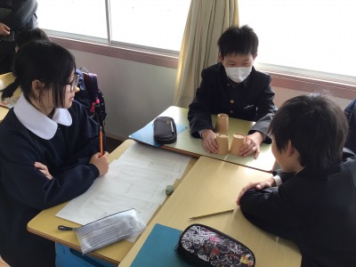 カップとボールを使った「確率」の授業でした。小学校の算数科で学んだ「場合の数」を発展させたような学習を体験させていただきました。