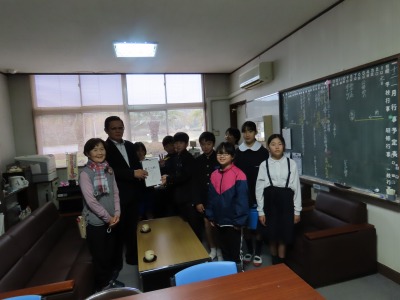 12月17日、集まった募金をお渡しするため、大和地域の社会福祉協議会の方々にきていただきました。