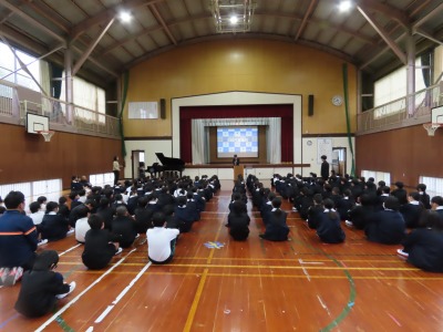 生徒指導担当からは、3月の生活目標「感謝を心で過ごそう」が伝えられました。あいさつや言葉がけ、周りの人への接し方、感謝は言葉や行動に表れます。また、6年生を送る会や卒業式なども感謝を表す大切な機会です。「ありがとう」がいっぱいの温かい3月にしていきましょう。