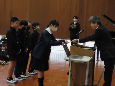 まず最初は表彰です。短歌、陸上記録会、県学校美術展等、様々な表彰がありました。いろいろな分野で大和っ子ががんばっている一つの表れです。