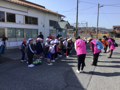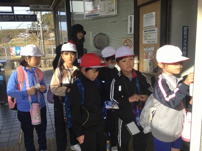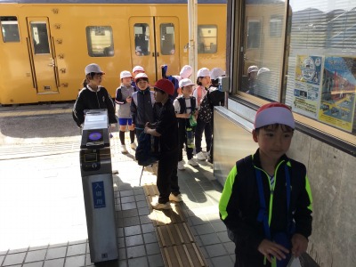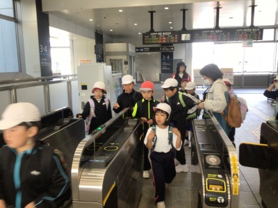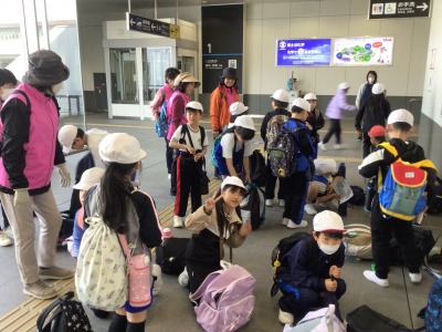 学校を出発し、岩田駅に到着しました。生活科の「みんなが使う場所や乗り物」についての学習をかねて、JRを利用しての遠足です。