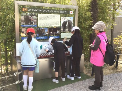 いろいろな動物の行動展示を、興味津々で見学しています。
