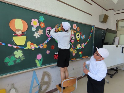 学級活動の後は、5・6年生の子どもたちが入学式の準備を行いました。黙々と働く姿、自分で仕事を見付けて動く姿など、一つ上の学年になった自覚の感じられる姿でした。