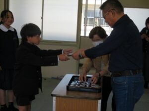 委嘱式では、社会福祉協議会の方々から、6年生の一人ひとりが、大和ジュニア福祉員としての証である手帳とバッジが渡されました。