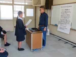 ジュニア福祉員とは、光市社会福祉協議会から市内の小・中学校の児童・生徒に委嘱される制度で、本校では毎年6年生が委嘱を受けています。この活動は、地域の一員として、高齢者や障がい者への理解、ボランティア活動、地域の見守り活動などを主体的に行い、思いやりの心や社会貢献の意識を育むことをめざしています。